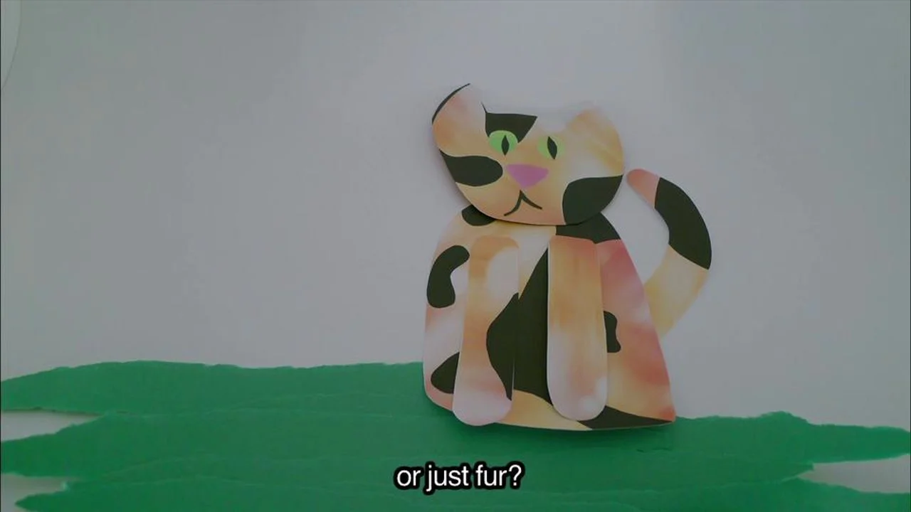 Animated paper cutouts illustrate a song about a girl who dreams of owning an adorable kitten named Mister Mongoosnuffles.